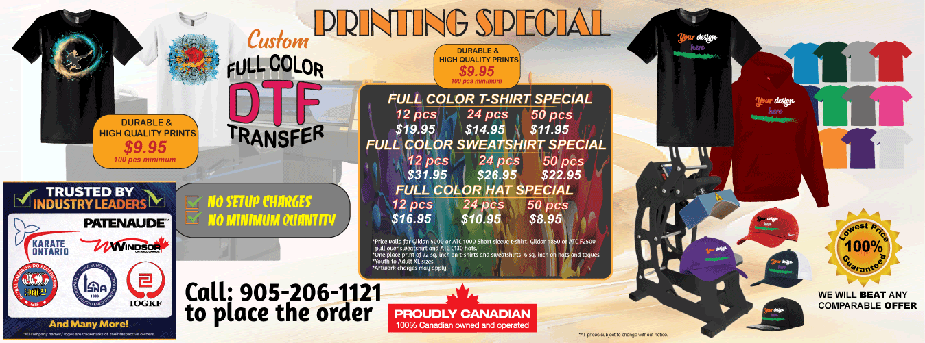 Sports Town LTD. is a distributor of custom embellished garments located in Greater Toronto Area. We have proudly served as a leader in our industry since 2005. As our reputation for high quality products and services at competitive prices has grown, we have reached out to meet the needs of people across the country!. Doing business with us is easier than ever before. Once you feel that we can be trusted with your business, please contact us on our Request a Quote page or call us TOLL FREE at 1-866-421-2836 to talk to one of our professional customer service representatives.